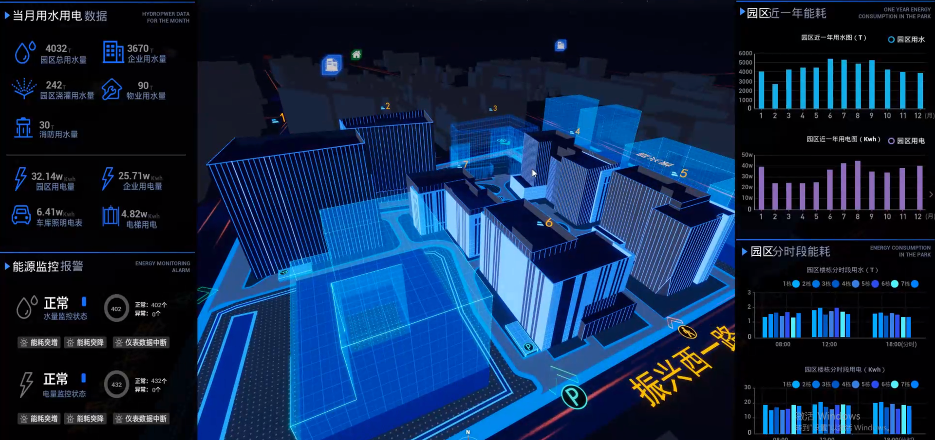 楼宇/工厂/园区 3D 孪生 · 设备 IoT 上云 · 能耗监控 · 故障预警。